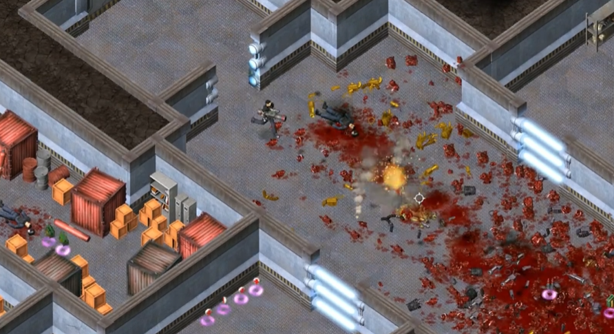 关卡进程推进,怪物的数量与强度会明显增加,尤其是配备激光炮的精英怪会频繁出现,此时必须合理利用场景中分布的掩体进行灵活的走位躲避。需要特别留意的是,关卡中后期会出现具备穿墙攻击能力的怪物,因此玩家需时刻保持警惕,注意白色墙体附近的动向,避免被出其不意地击中。在探索过程中,应及时消灭守卫在激光室等区域的少量敌人,并充分利用这些区域补充装备和弹药,为后续战斗做好准备。关卡中还存在会自动锁闭的电子门,在触发这类机制前,务必确保自身状态良好,建议携带至少五条备用生命和充足的医疗包。